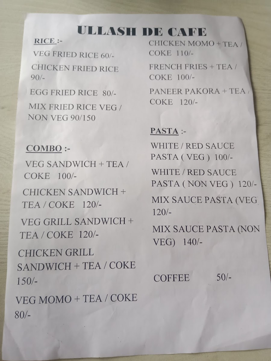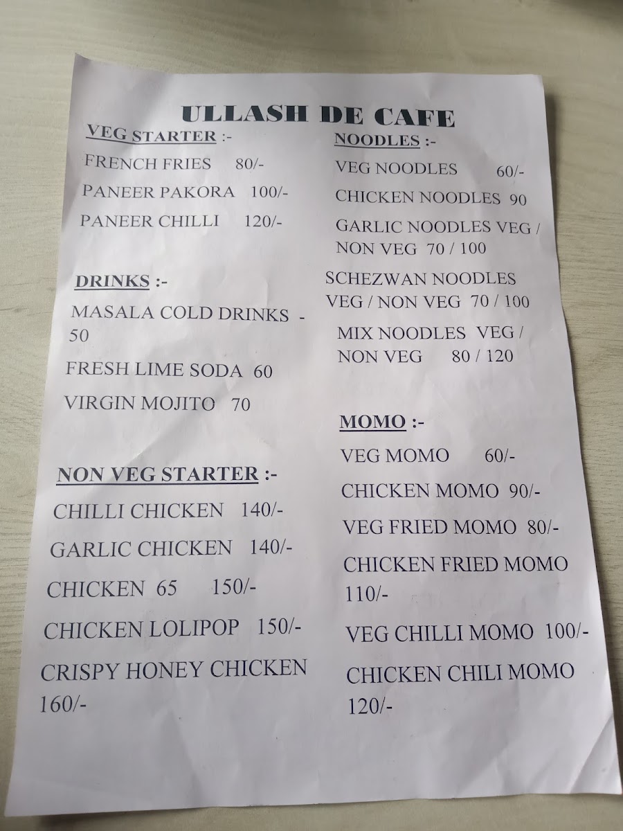 Ullash De Cafe Menu